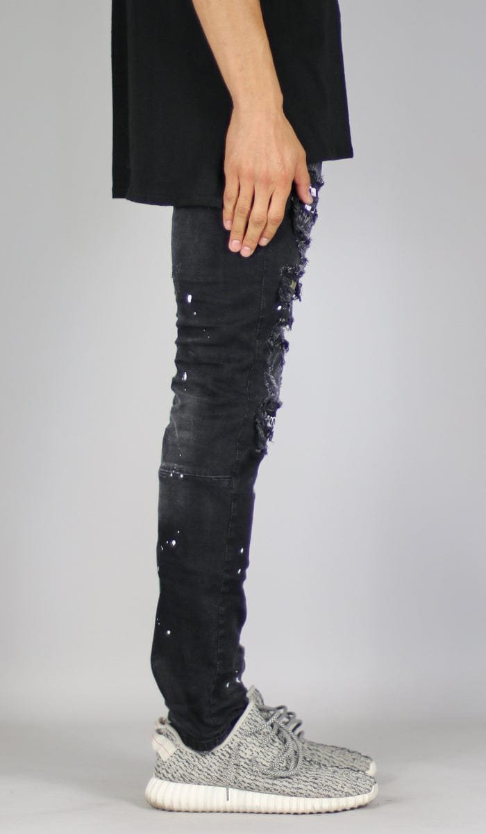 The Men’s Stretch Ripped Patched Denim Jeans. These jeans are a perfect fusion of rebellious attitude and modern comfort, designed to elevate your urban fashion game with their unique combination of distressed detailing and functional aesthetics.