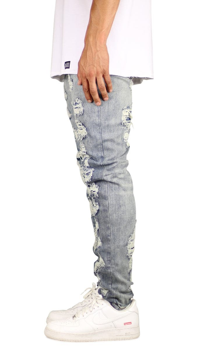 There’s no denying that distressed denim is having a moment; if looking to master this irreverent streetwear trend, simply recruit JIANOM Shredded tapered jeans into your edit. Our profile is purposefully hand-destroyed to the extreme, with rips and tears embodying an aesthetic of youthful rebellion that will never fail to earn respect on the street-style scene.
