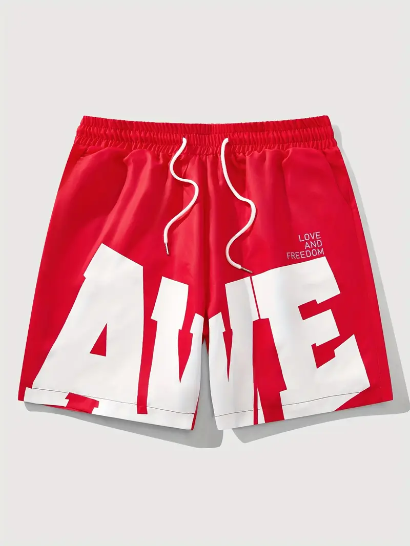 Men’s Casual Short Pants Polyester, 125g, Lace Up, Regular Fit, Non-Stretch, Woven, 150, Alphabet Pattern