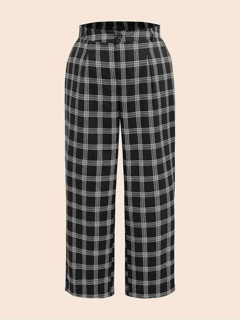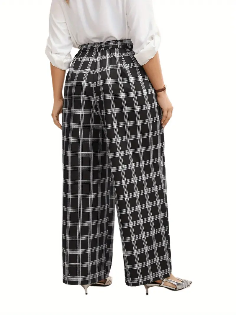 Women Wide Leg Pants Casual Plaid Print Plus Size Loose Trousers with Pockets for Work Office Streetwear