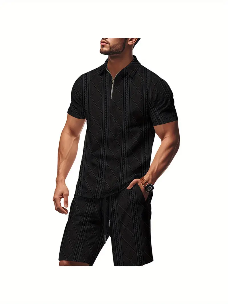Summer New Casual Short Sleeve Shirt Shorts Two Piece Set Jacquard Leisure American Vacation Style